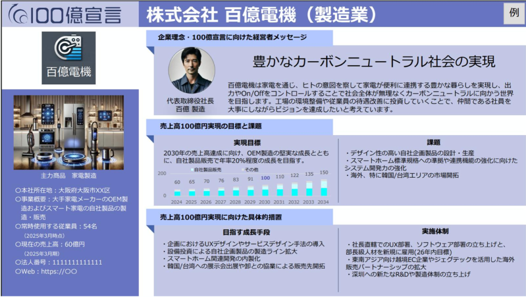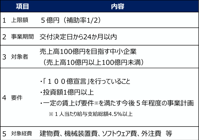 となります。中小企業成長加速化補助金は、こうした観点から将来の売上高100億円を目